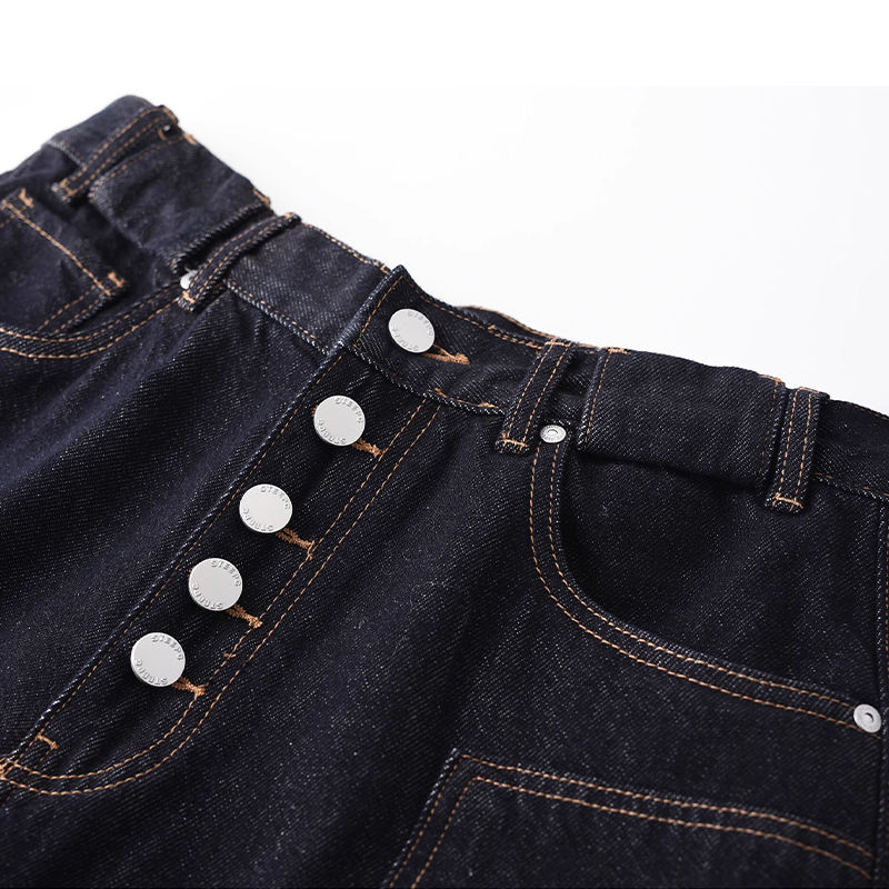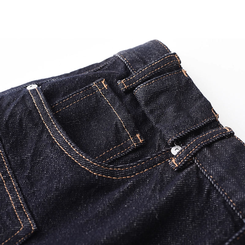 Haute qualité Denim fil à coudre taille moyenne décontracté jean droit Paris boucle Original vache lavé outillage bois tanins coupe tissé