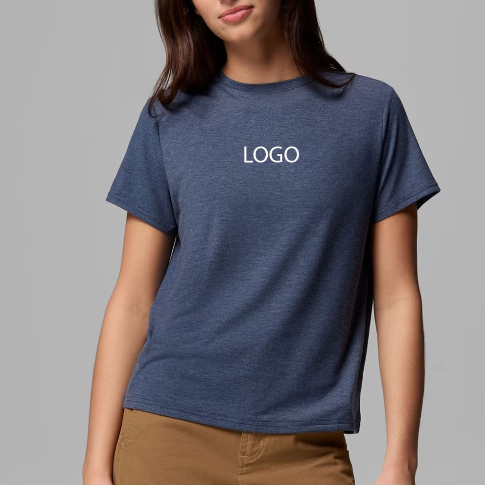 T-shirt en coton de haute qualité au design tendance pour femme, style créateur, avec logo personnalisable, idéal pour l'extérieur, couleur unie 2026