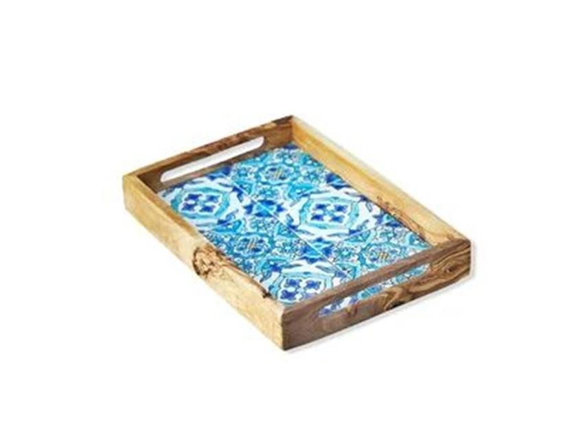 Plateau décoratif en bois de manguier avec impression émaillée, design de haute qualité, plateau de service en bois, plateau à impression émaillée à prix très bas