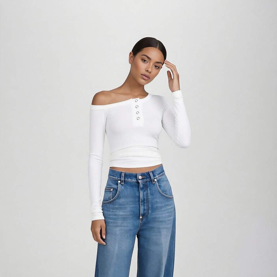 Chemisier court moulant à manches longues et col bateau pour femme, idéal pour les sorties – Qualité supérieure