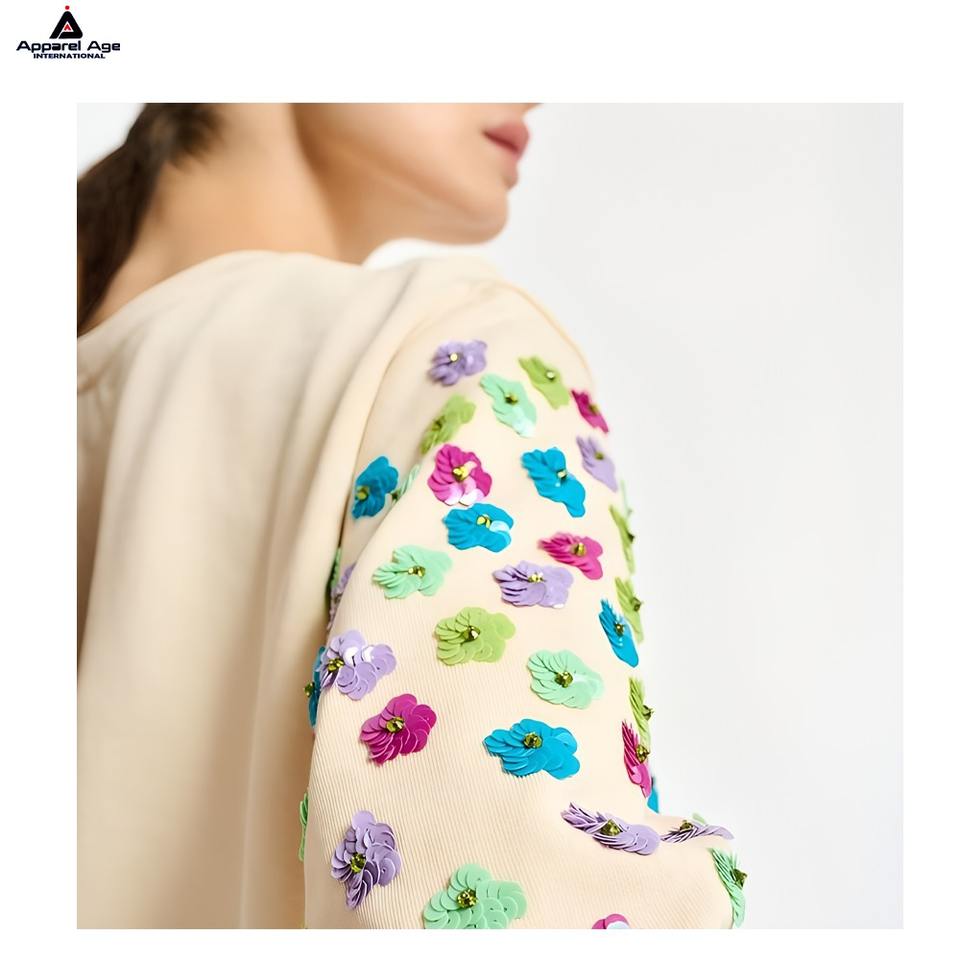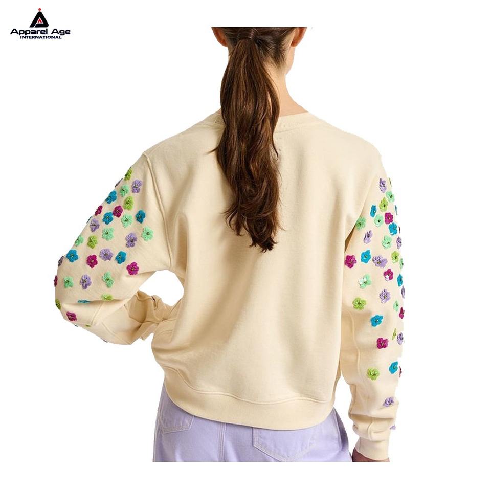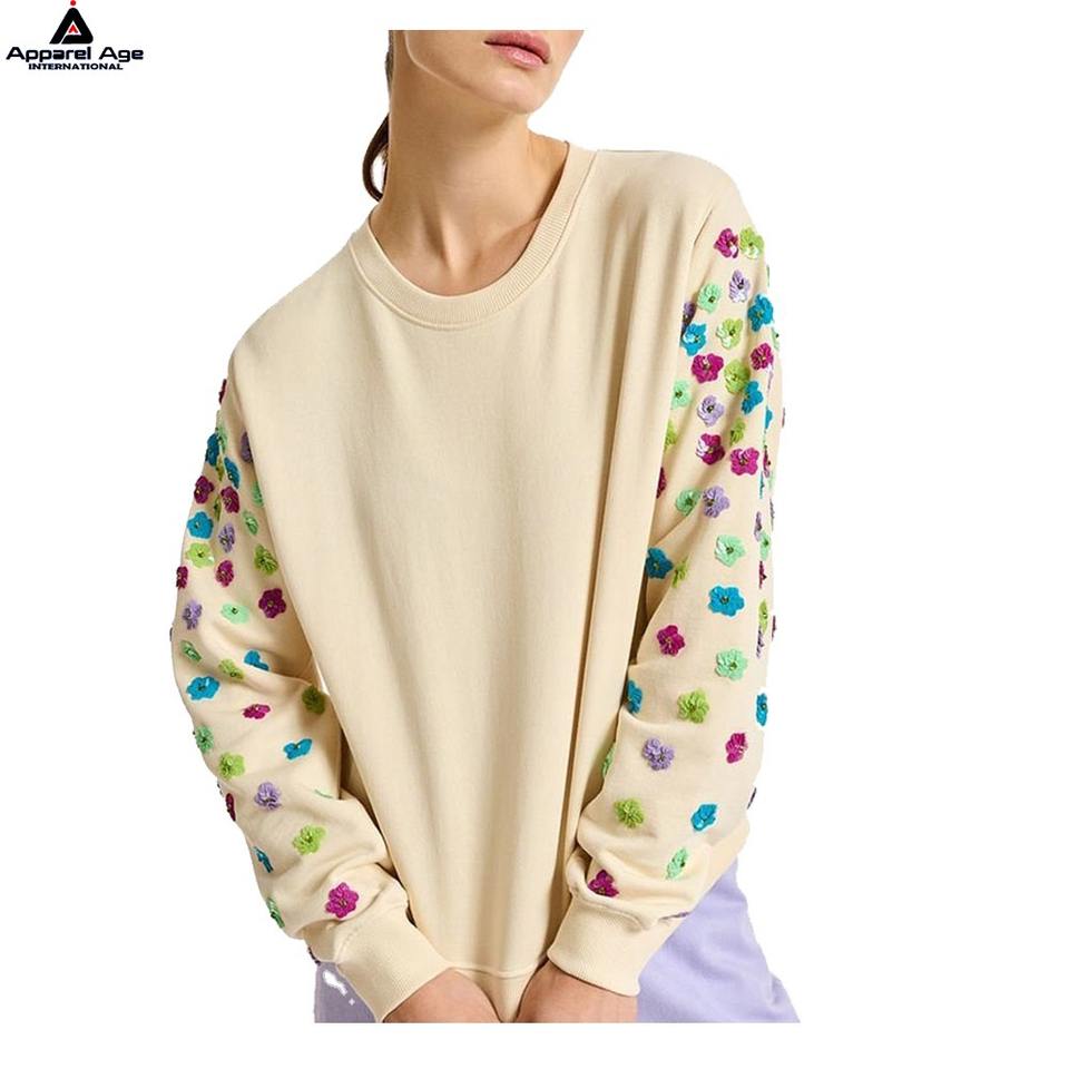 Nom du produit:Coton personnalisé 350Gsm de luxe 3d Floral Sweatshirts de Wome