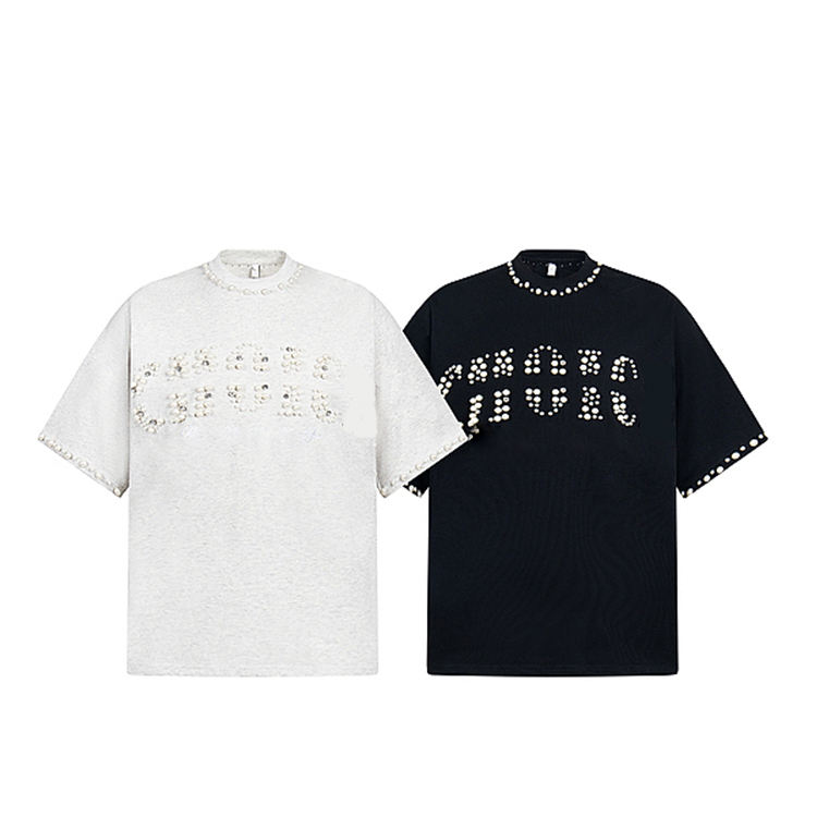Haute qualité, fabricant de créateur, luxe, grammage lourd, coton, coupe ample, personnalisé, orné de strass et de perles, respirant, 100%
