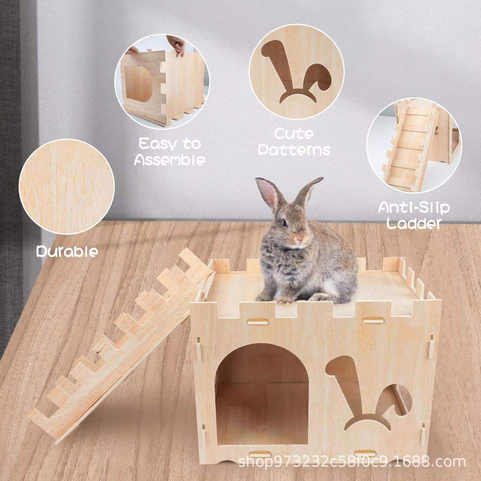 Petit château de lapin en contreplaqué détachable de haute qualité Maison pour animaux de compagnie en bois de petit lapin