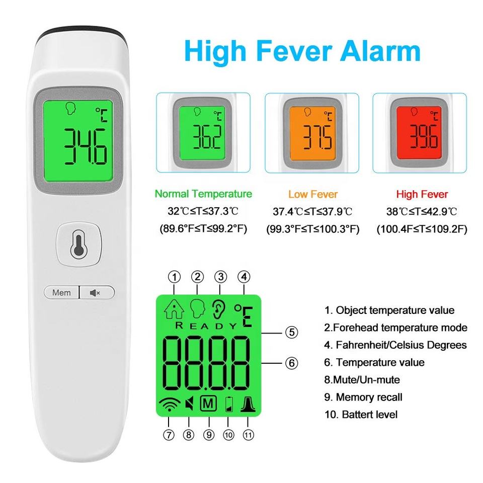 Gamme de mesure:Front: 32.0 ℃-42.9 ℃(89.6 °F-109.2 °F)