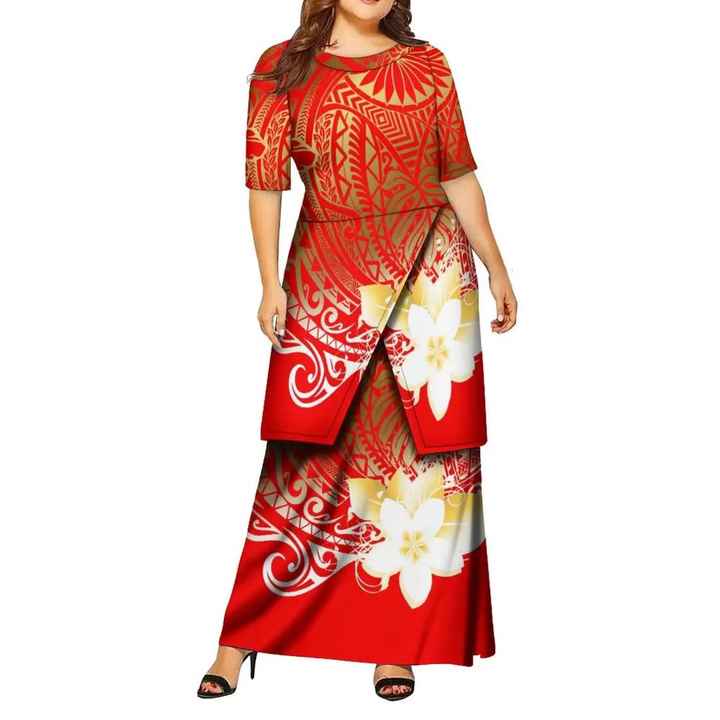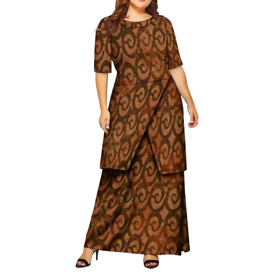 High Quality Digital Printing Maxi Bohemian Casual Autumn Dresses Irregular Hem Half Sleeve Two-Piece Set High Waist Floral