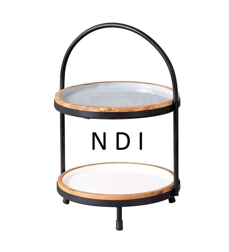 Support à gâteau décoratif à 2 niveaux en bois de haute qualité, avec plateau en bois, finition noire thermolaquée, à prix réduit