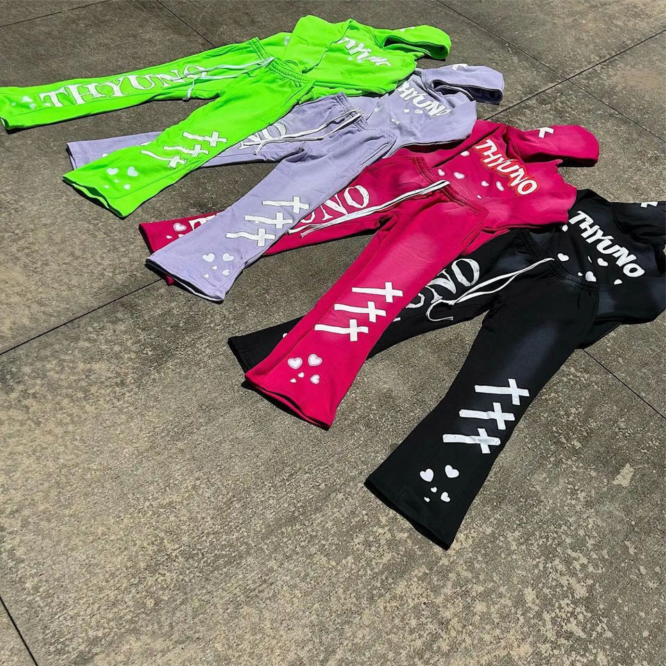 Ensemble sweat-shirt et pantalon de survêtement d'hiver coupe-vent écologique de haute qualité avec appliques en strass vieilli 500GSM, personnalisé et luxueux