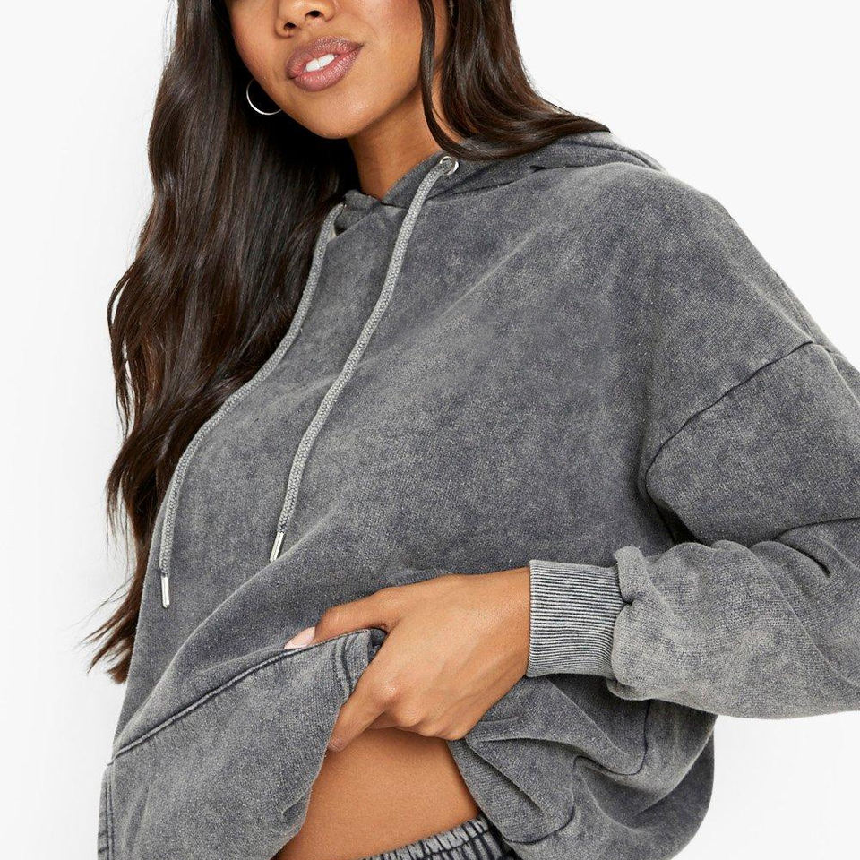 Haute qualité lavage à l'acide en détresse brodé femmes grande taille survêtements respirant coton polaire élégant hiver confort