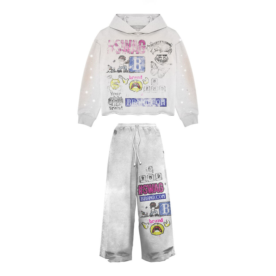 Survêtements de haute qualité en molleton français délavé, personnalisables avec broderie, impression et strass, pour hommes, streetwear