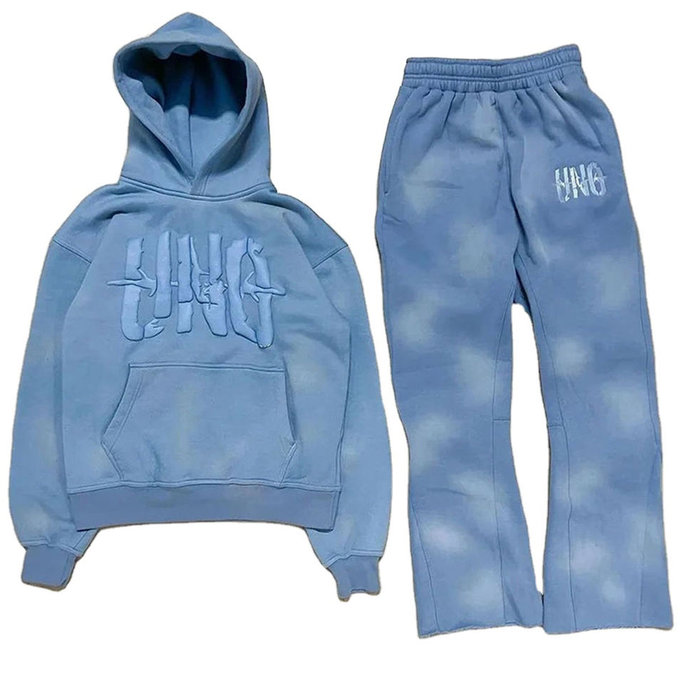 Survêtements en éponge français en détresse de haute qualité pour hommes Sun Fade Streetwear coton personnalisé pantalons de survêtement à capuche ensembles 2026