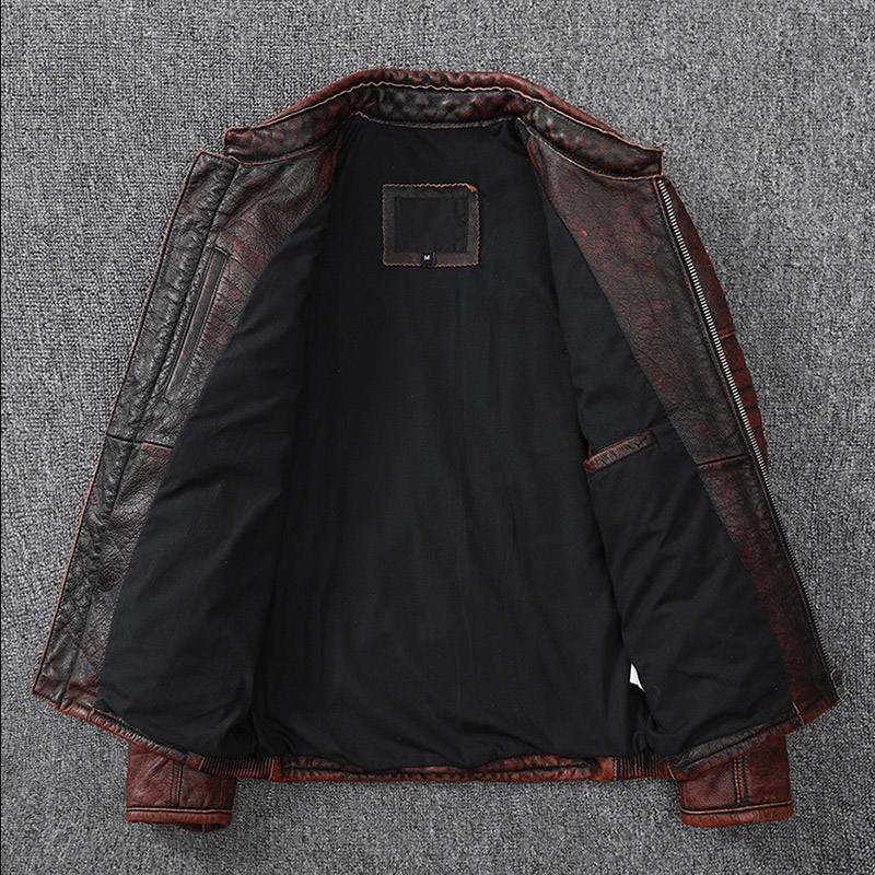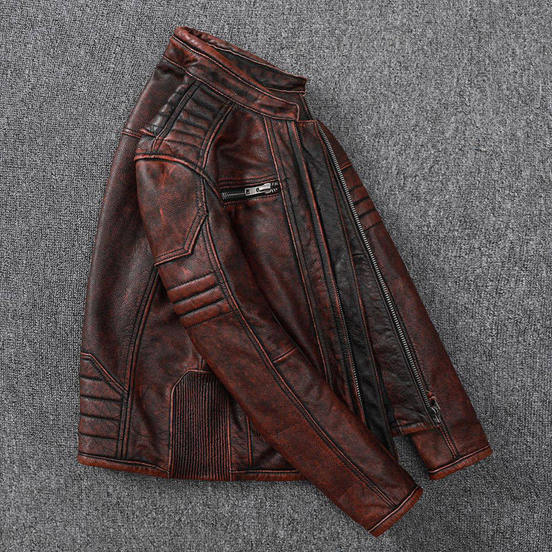 Veste en cuir de moto de haute qualité, aspect vieilli, en cuir de vache véritable pour homme
