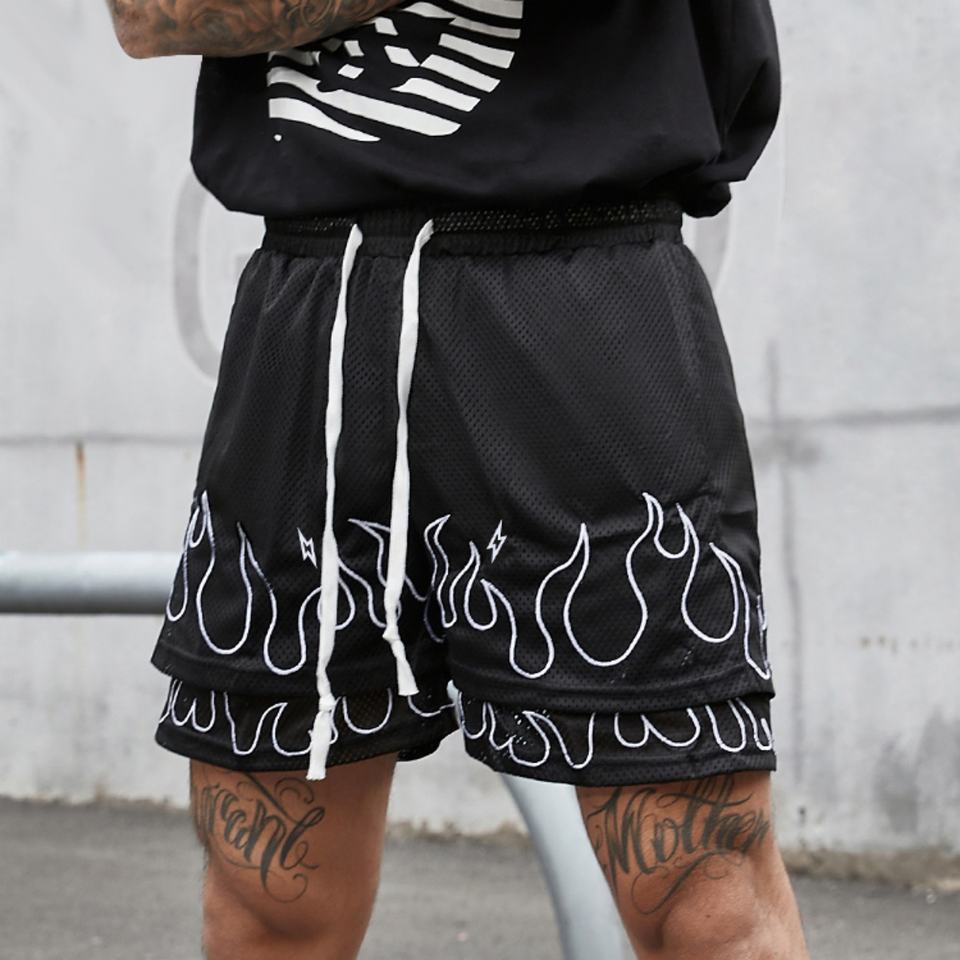 Shorts de sport pour homme de haute qualité à double couche en mesh 2 en 1, impression de logo personnalisé, shorts de basket-ball en mesh pour homme
