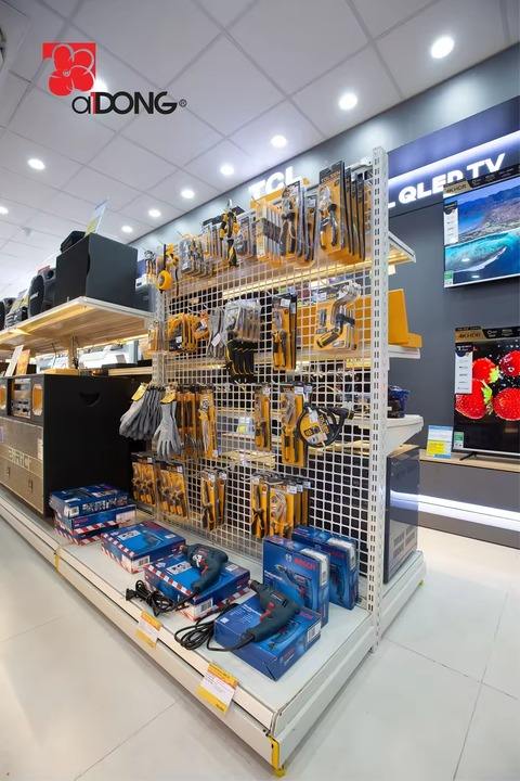 Étagère de présentation en métal double face de haute qualité Étagère de supermarché et de magasin de détail Service OEM/ODM Usine du Vietnam