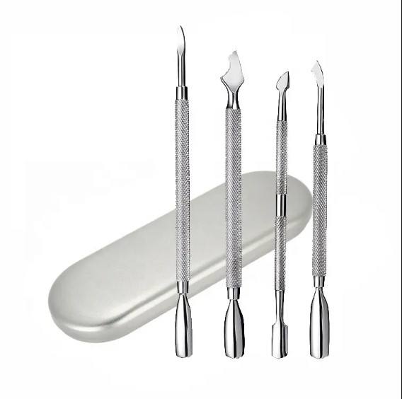 Poussoirs à cuticules en acier inoxydable de haute qualité Instrument de soin des ongles élégant double face avec instruments de soin de la vie avec étiquette personnalisée