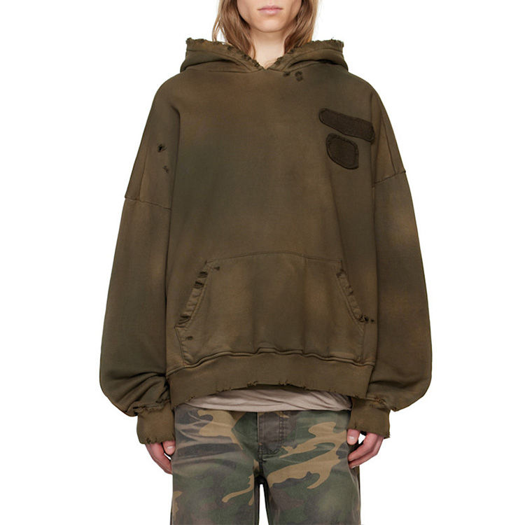 Sweat-shirt pour homme en molleton français vintage lavé, à épaules tombantes, avec broderie appliquée, effet délavé, surdimensionné, de haute qualité