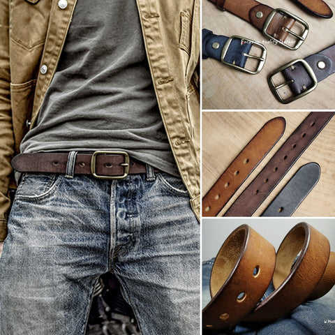 Ceinture en cuir véritable de vache de haute qualité et durable pour hommes, ceinture décontractée avec boucle en alliage pour un style décontracté