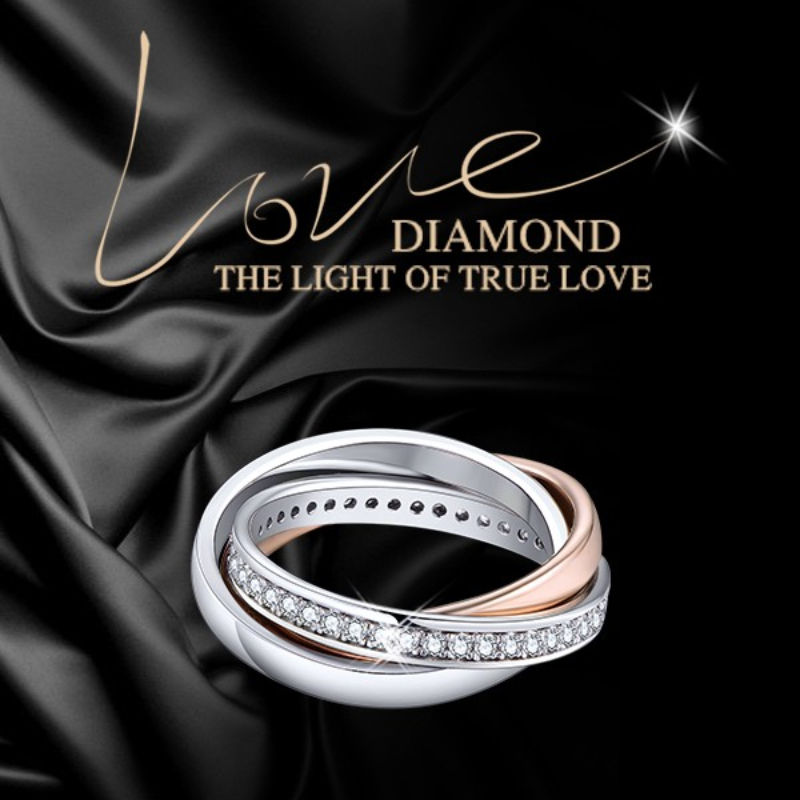 Bague roulante entrelacée tricolore en argent sterling 925, design durable de haute qualité