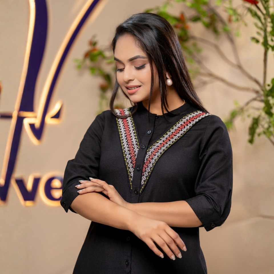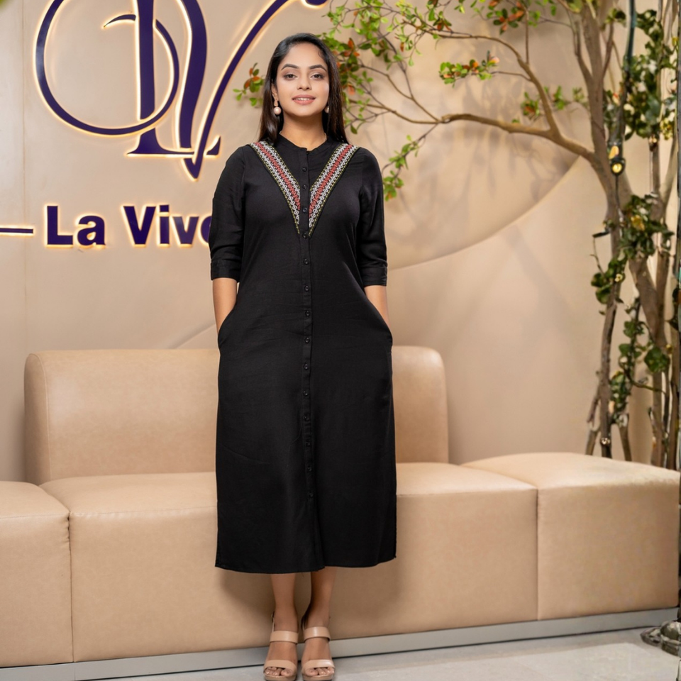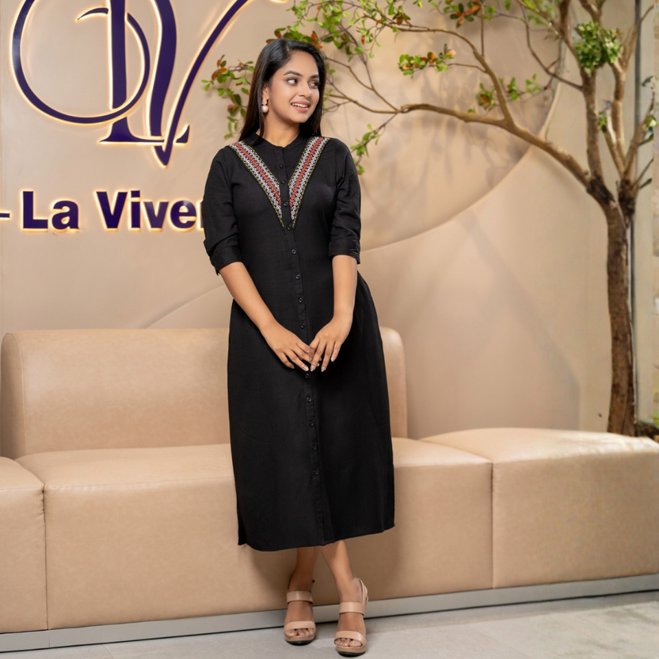 Robe midi élégante en lin noir chic et durable de haute qualité pour femmes