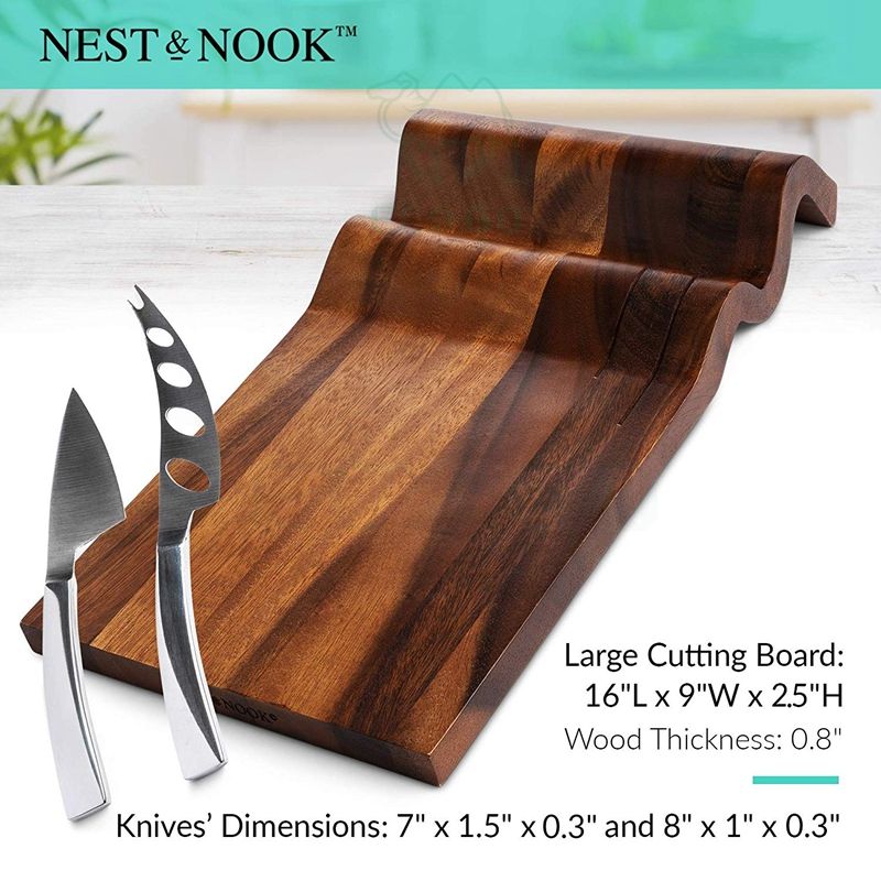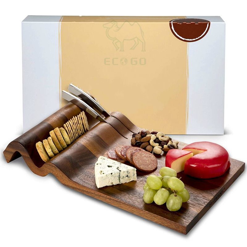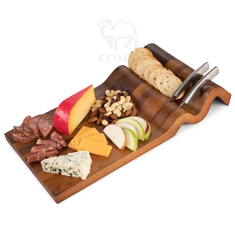 Planche à fromage rectangulaire en bambou écologique Eco Go de haute qualité, grande capacité, charcuterie, 2 couteaux en acier inoxydable