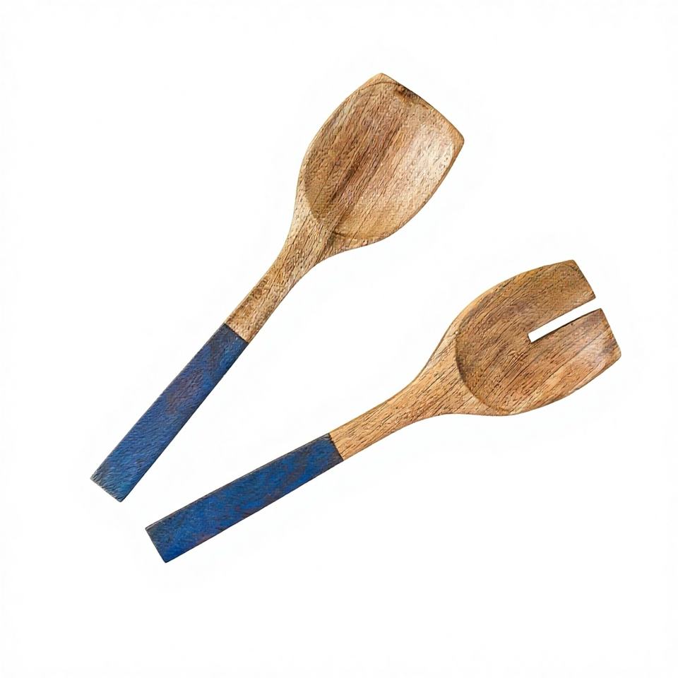 Cuillère-spatule de service en bois d'acacia et résine bleue écologique de haute qualité, accessoires de cuisine de qualité alimentaire