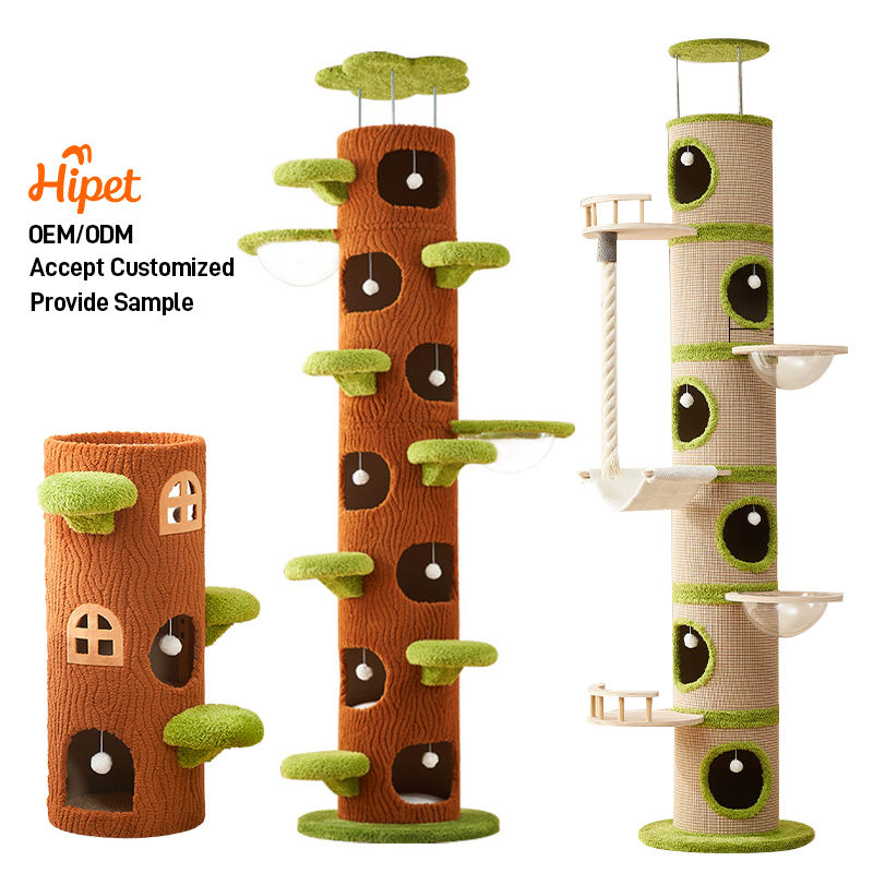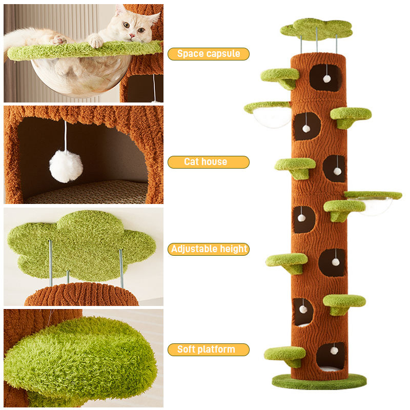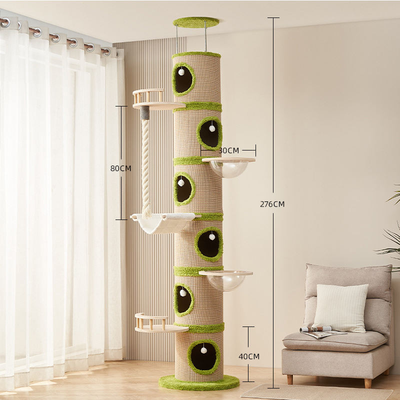 Arbre à chat écologique de haute qualité de plafond à plancher pour l'intérieur avec des feuilles vertes chats avec hamac en peluche maison de chat