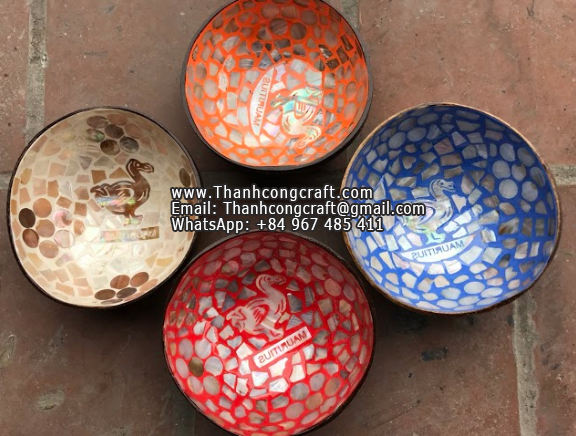 Bols en coque de noix de coco écologiques de haute qualité, grande quantité, motif rond, vaisselle laquée, bonne qualité pour l'utilisation à Maurice