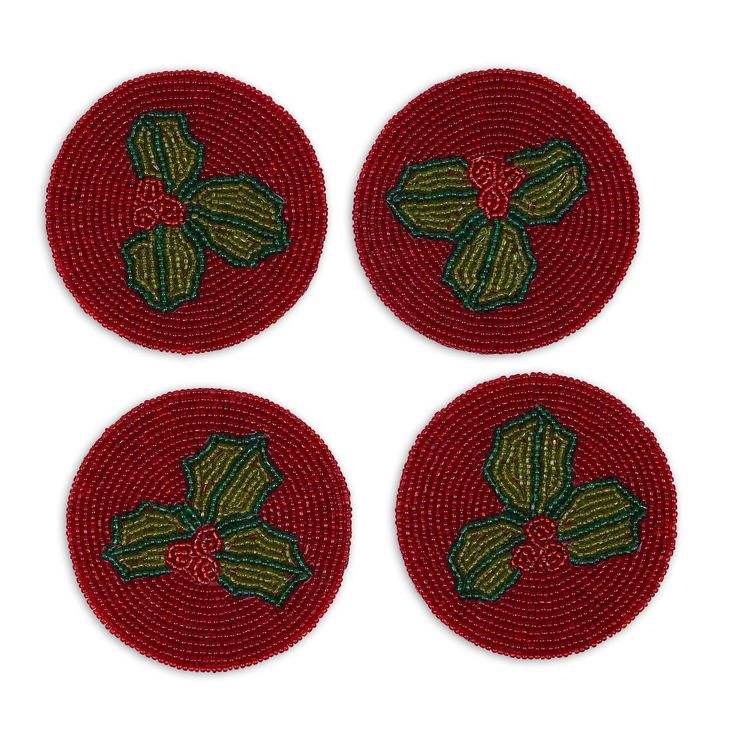 Sous-verre à thé perlé artisanal personnalisable, écologique et de haute qualité, motif crème glacée, bordure verte et rouge, forme décorative pour table