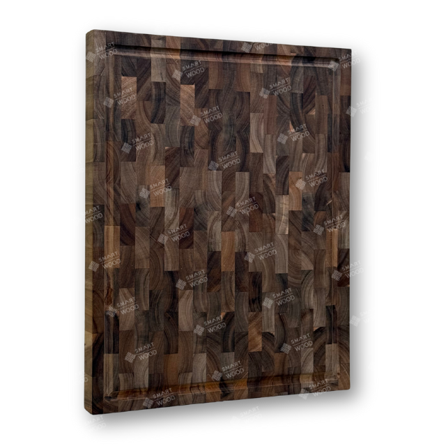Planche à découper rectangulaire en bois d'acacia de haute qualité, écologique et personnalisable avec logo : Série TitanGrid | Grande pièce de bois massif à grain traversant