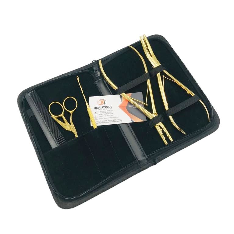 Pinces plaquées or en acier inoxydable écologiques de haute qualité Kit d'outils d'extension de cheveux en gros