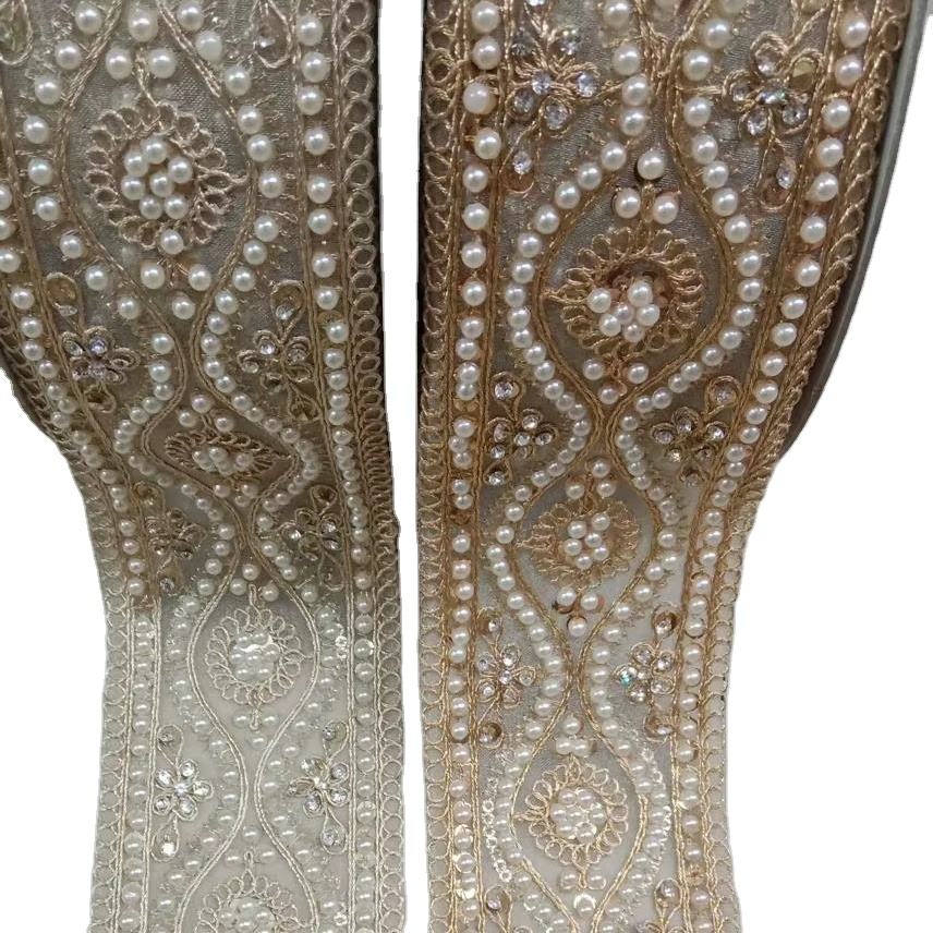 Ruban en organza soluble dans l'eau de haute qualité, écologique, en polyester, avec perles de sequins, broderie métallique en dentelle, pour garniture de robe de mariée