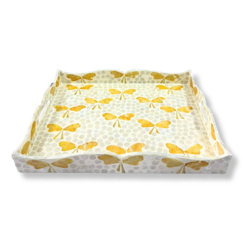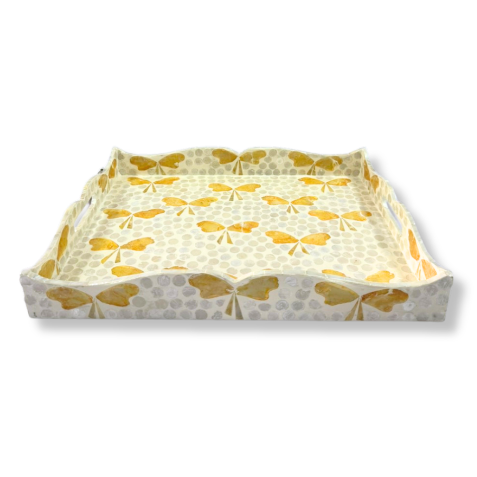 Plateau en MDF rectangulaire écologique de haute qualité avec bord ondulé motif d'arc coloré incrustation de coquille de Capiz blanche