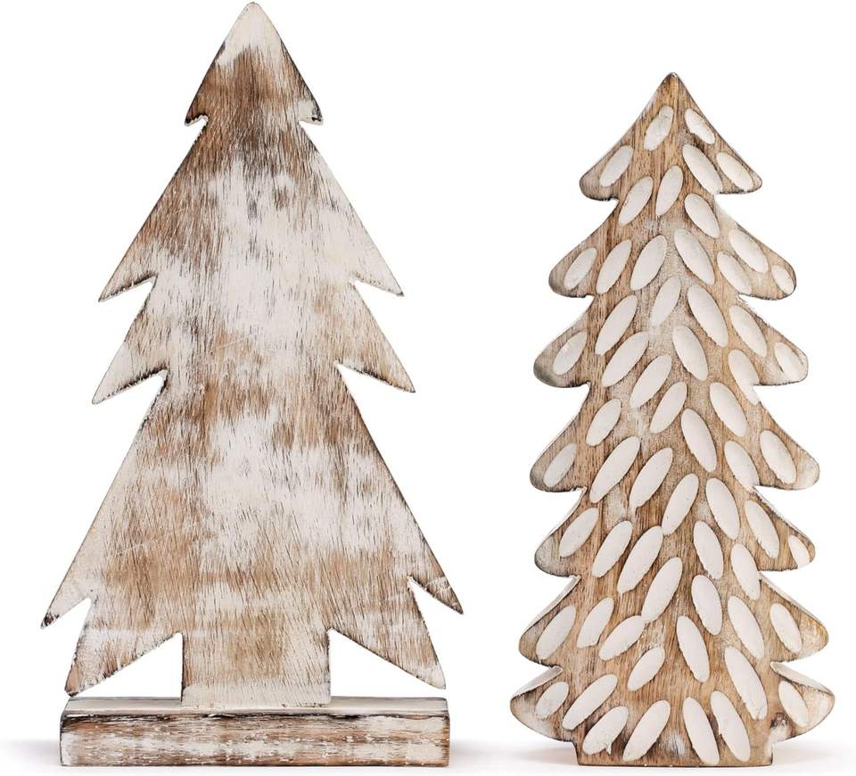 Figurine d'arbre de Noël en bois de manguier blanchi à la chaux de haute qualité lot de 2 pour décorations de Noël