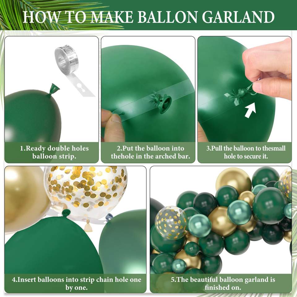 Décorations de ballons d'anniversaire écologiques de haute qualité, ensemble d'arches de ballons dorés et vert foncé pour décorer les événements