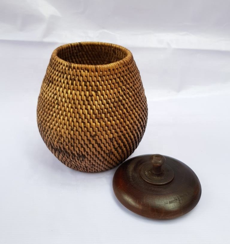 Porte-bouteille en rotin écologique de haute qualité avec dessous de plat en osier marron, fabriqué dans le style de l'art populaire vietnamien, logo personnalisé