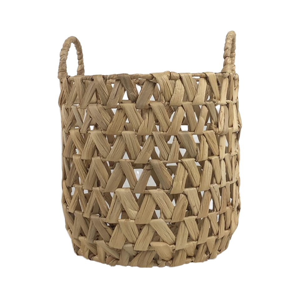 High Quality Eco-friendly Round Shape Natural Water Hyacinth Handmade Storage Basket With Handle for Laundry