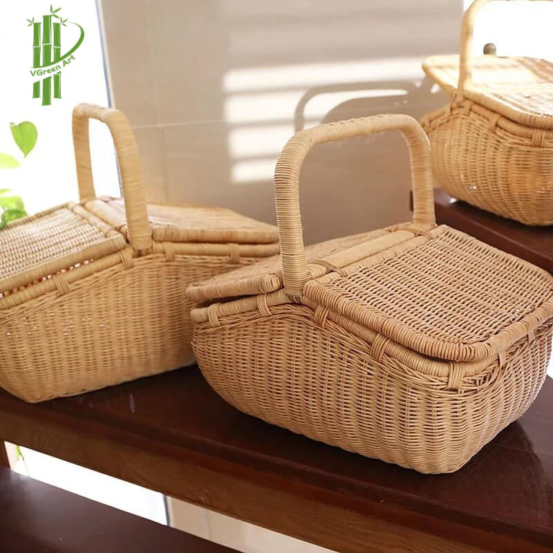 Panier de pique-nique en rotin tissé écologique de haute qualité avec couvertures et poignées pour voyager à l'extérieur 2022 produit au Vietnam