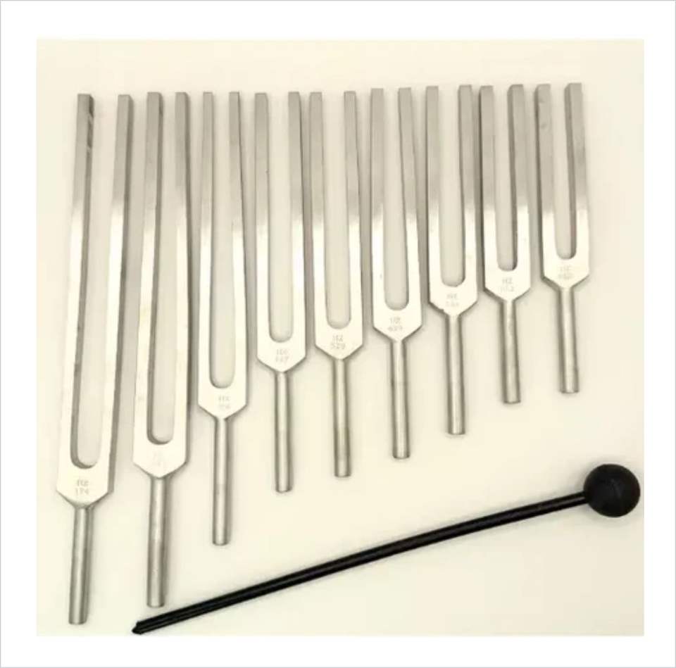 Ensemble de diapasons manuels en acier inoxydable de haute qualité pour les huit chakras, avec sac, réutilisables pour la guérison sonore, la méditation et la relaxation