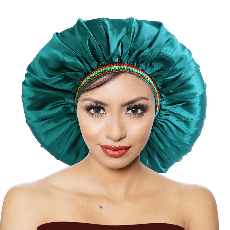 Haute qualité élastique nuit sommeil chapeaux femmes bouclés soins des cheveux plus récent couleur unie Extra Large Satin rond cheveux Bonnet pour tresses