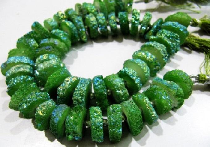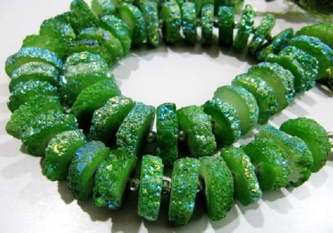 Perles de cristal de quartz druzy vert de haute qualité, 15-20 mm, brin de 8 pouces de long, prix de gros étincelant