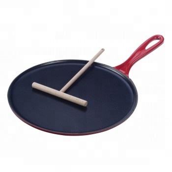 Poêle à frire en fonte émaillée de haute qualité, poêle Tawa, poêle à crêpes ronde Comal/Griddle avec spatule et racloir en bois