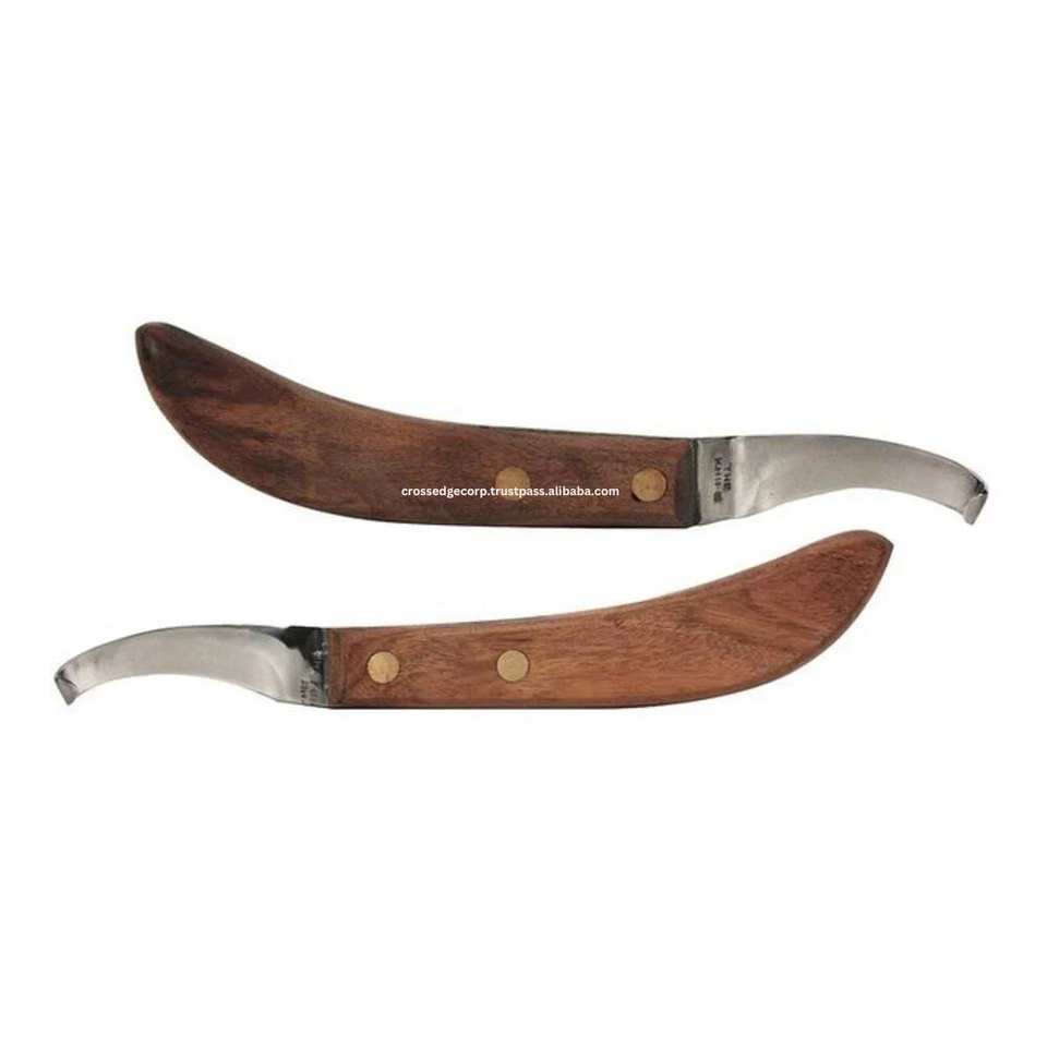 Haute qualité bovins équins chèvre plus tranchant rasoir soins du cheval maréchal-ferrant couteau à sabot bétail manche en bois Instruments vétérinaires