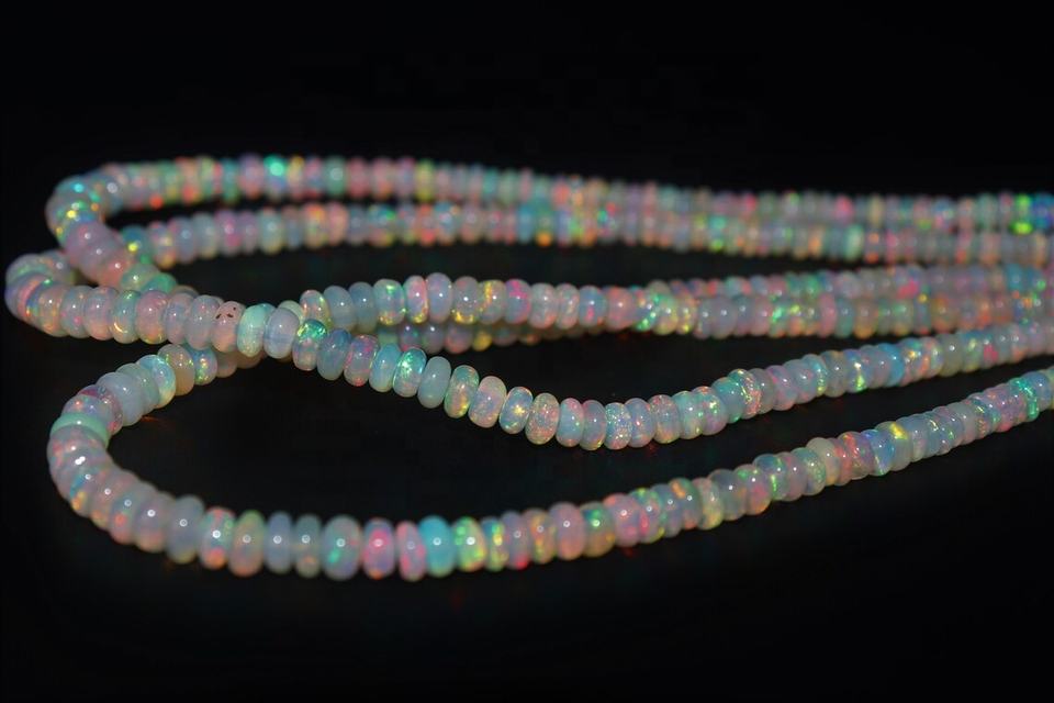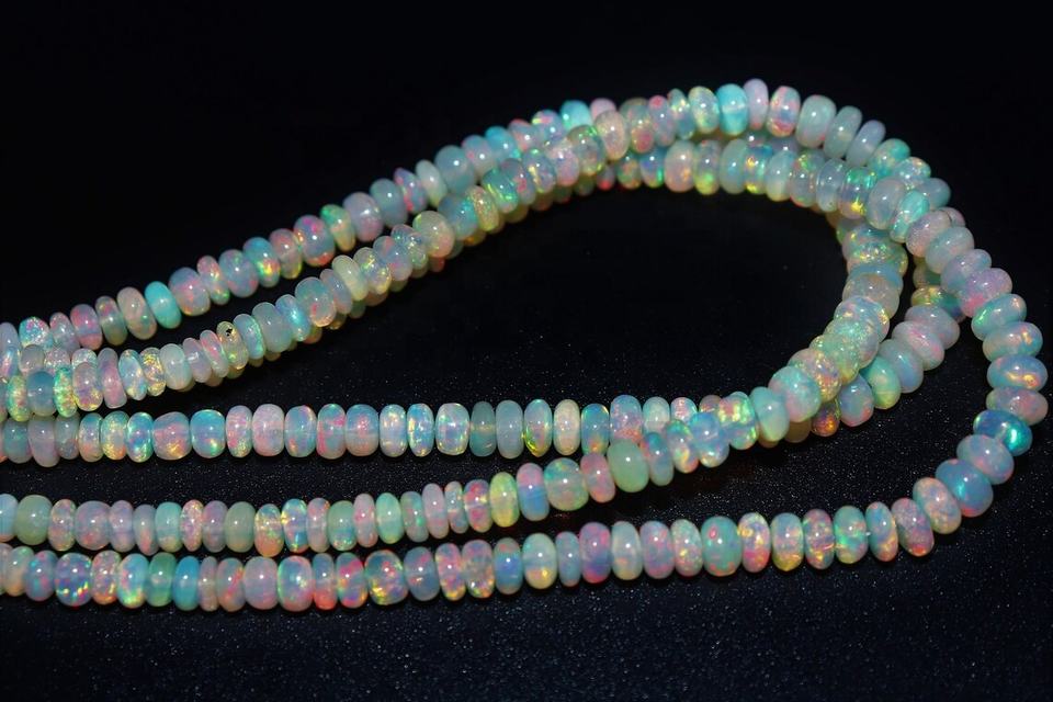 Product name:White Ethiopian Opal Smooth Rondelle Beads