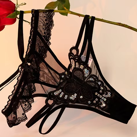String taille basse sexy en dentelle et maille