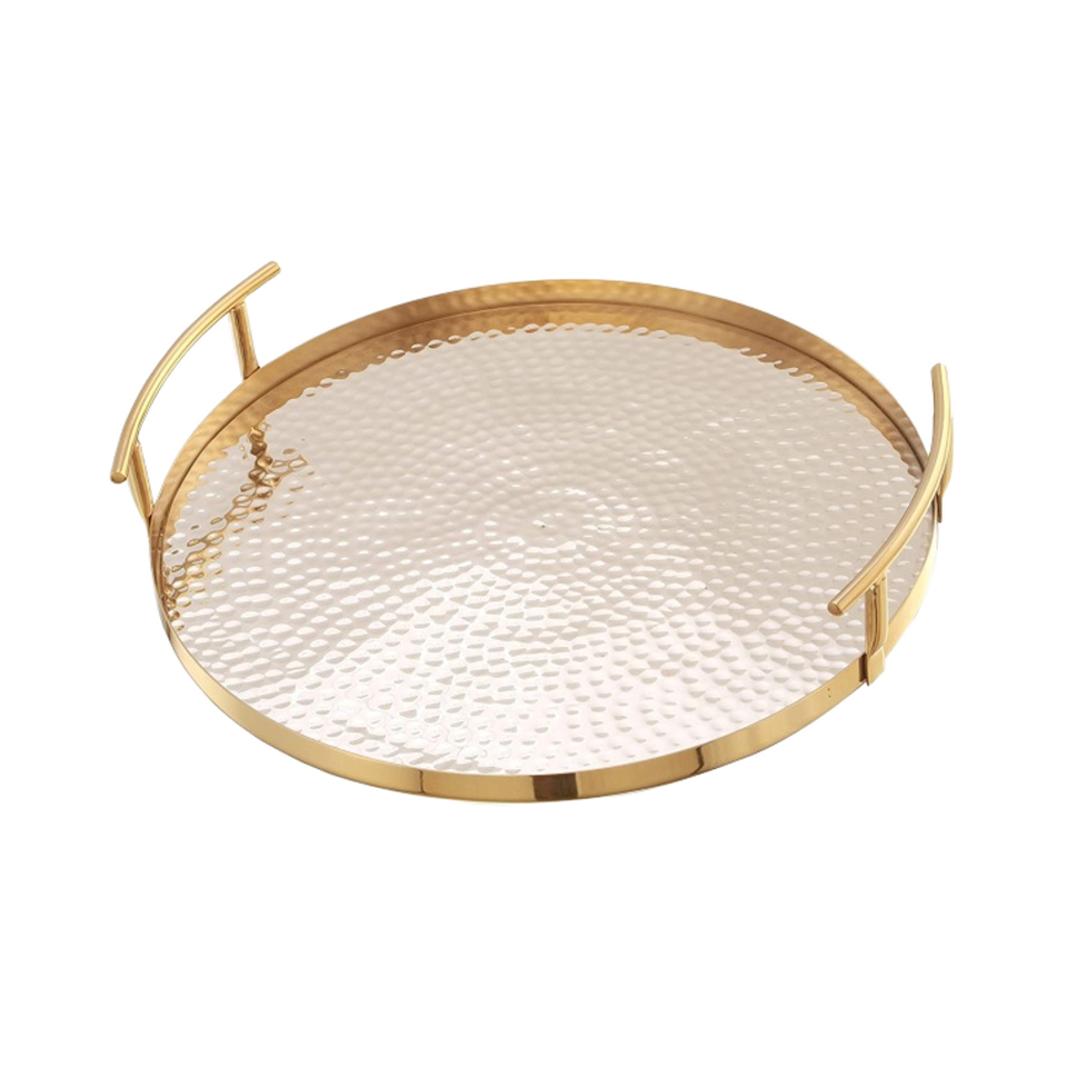 Plateau de service en acier inoxydable écologique au design classique exclusif de haute qualité pour assiettes à vaisselle brillantes martelées or champagne