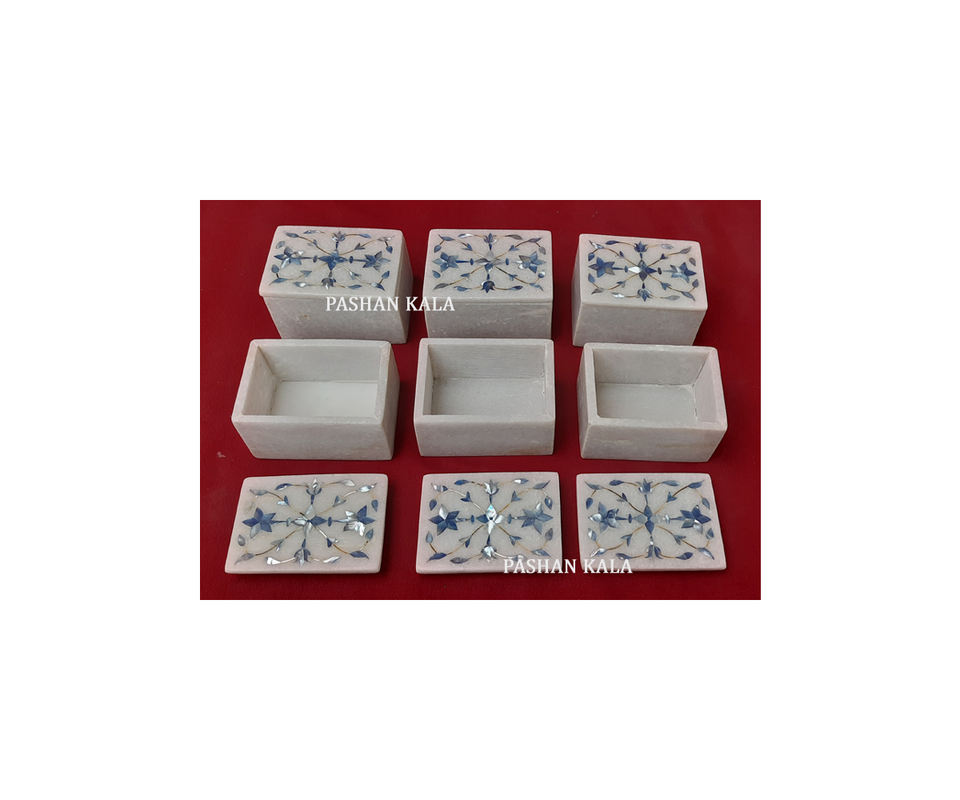 Coffrets cadeaux en nacre bleue naturelle incrustée de marbre blanc exclusif de haute qualité pour les décorations pour la maison et les cadeaux