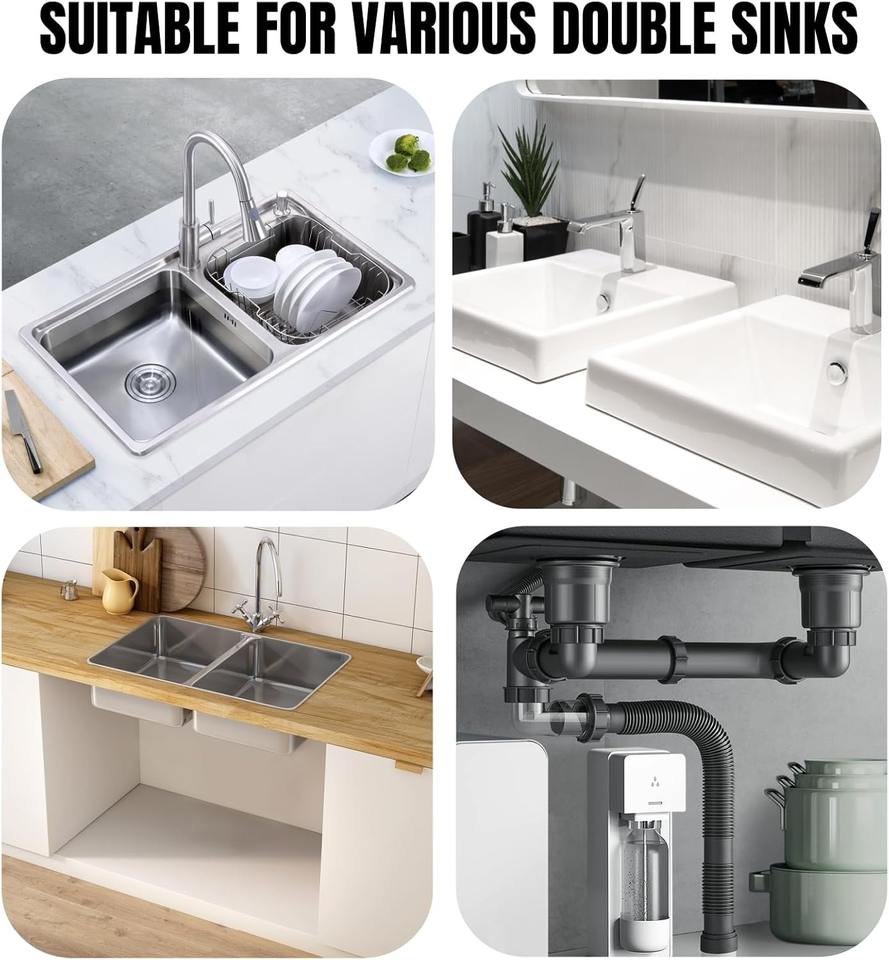 Kit de vidange d'évier de cuisine extensible et flexible de haute qualité, 1 1/2" ou 1 1/4", pour éviers à double bac