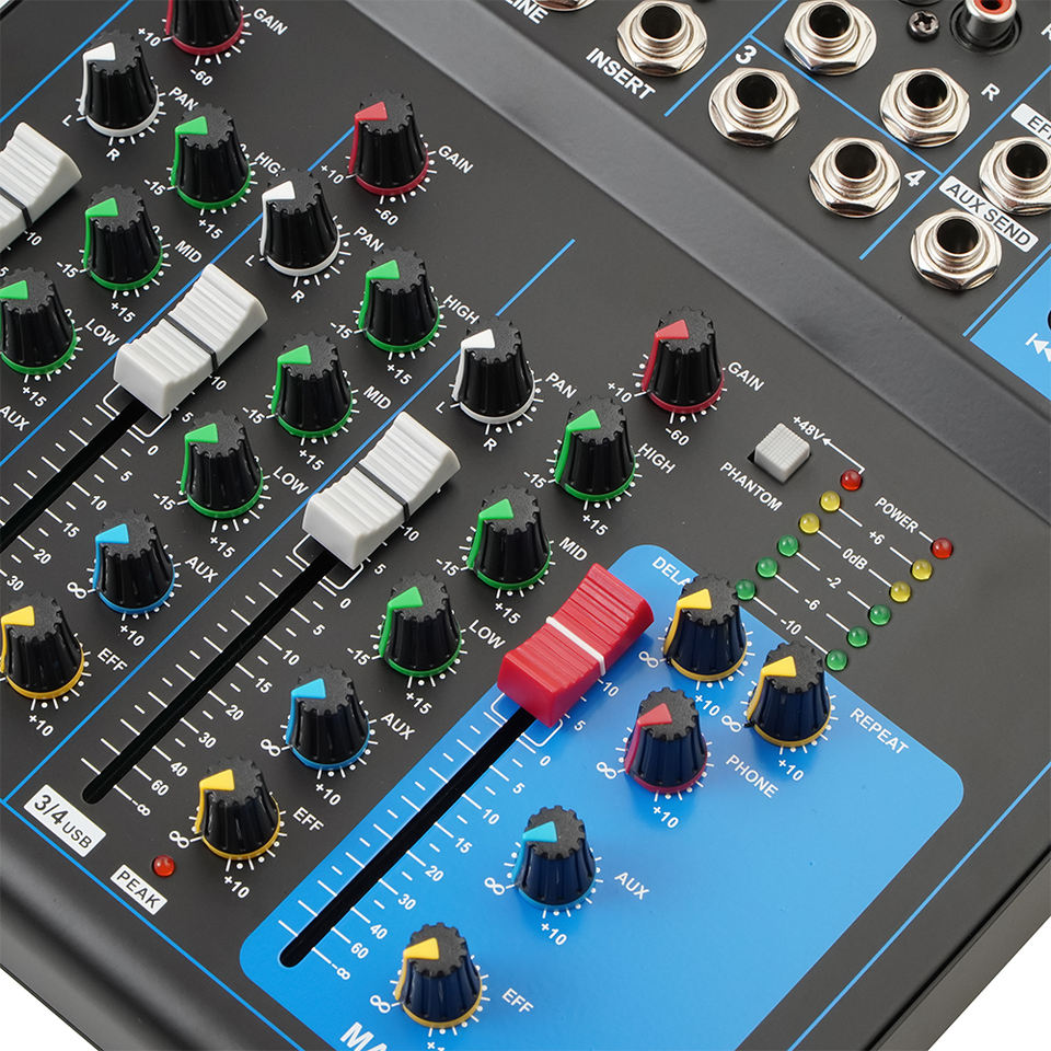 Console de mixage audio DJ de haute qualité F4 4 canaux pour karaoké, musique, 4 entrées auxiliaires, enregistrement en studio, contrôleur d'enregistrement, interface DSP