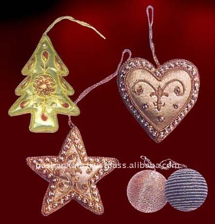 Tissu de haute qualité 4 pièces, différentes formes, broderie de Zari et perles, travail personnalisé, ornements suspendus