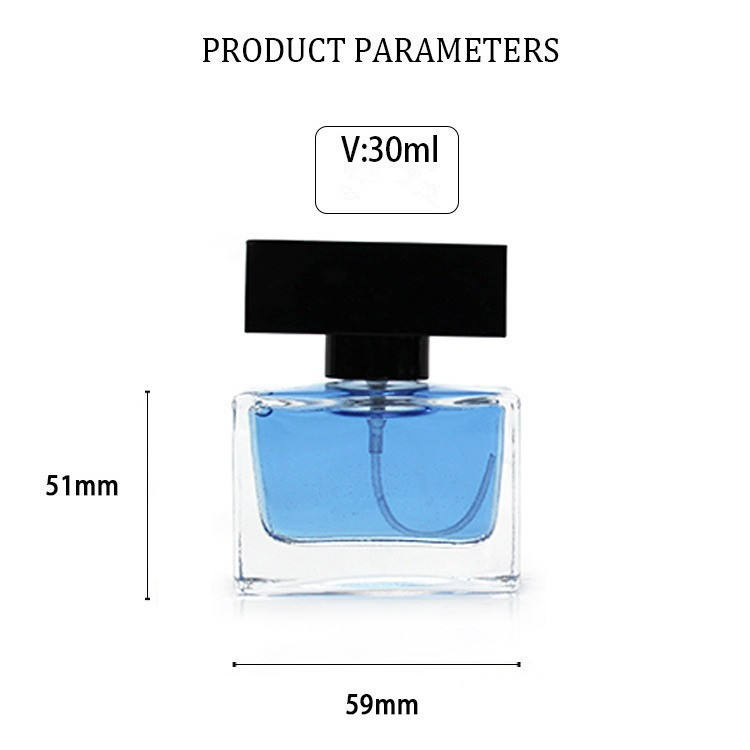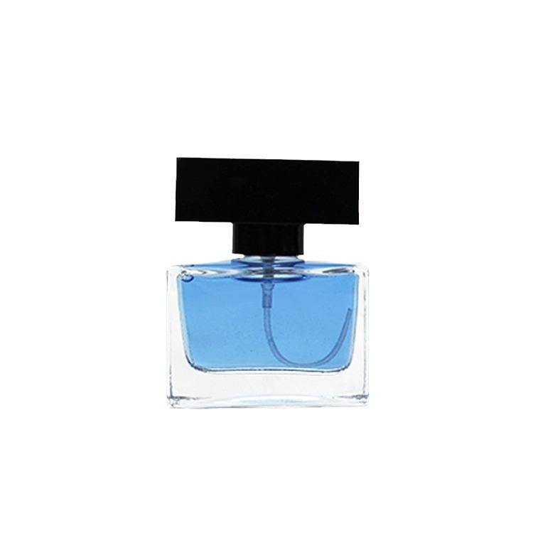 Flacon de parfum cosmétique en verre transparent carré de haute qualité, prix d'usine, vide, 30 ml, 50 ml, 100 ml, avec couvercle noir