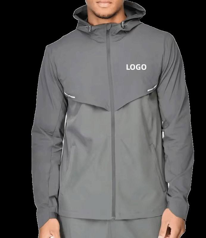 Veste pour homme en toile légère de sport d'usine de haute qualité à col montant en polyester avec logo réfléchissant élégant